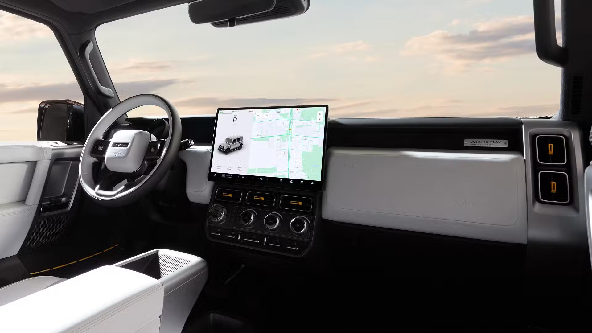 Despite its rugged exterior, the V23 is modern and minimalist inside, highlighted by: