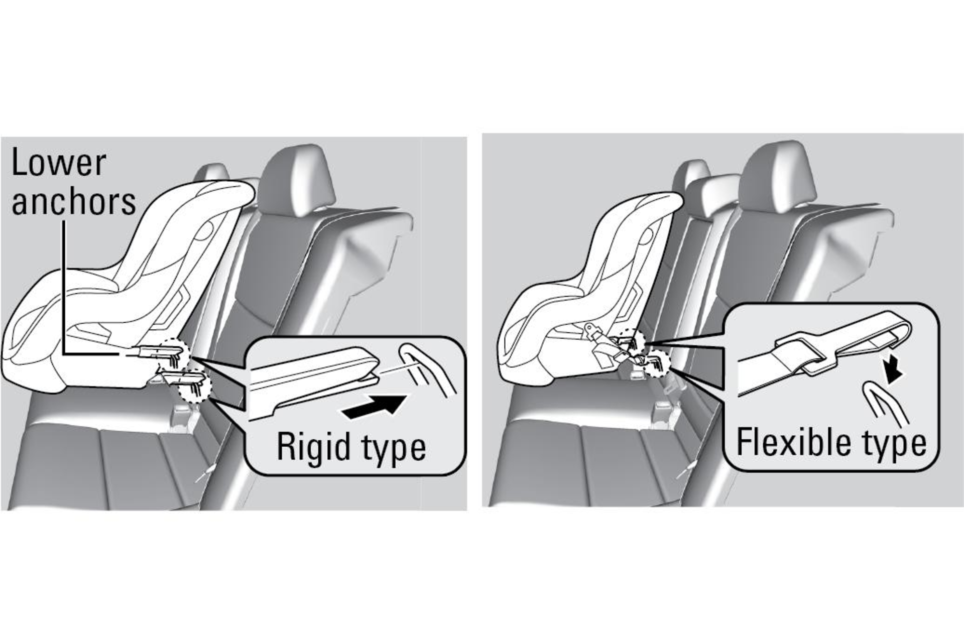 The system uses two D-shaped anchor points attached directly to the car’s chassis, located in the rear seats. Once the child seat is clipped into these anchor points, it is securely fastened and cannot move more than a few millimeters, provided the top-tether strap is also in place.