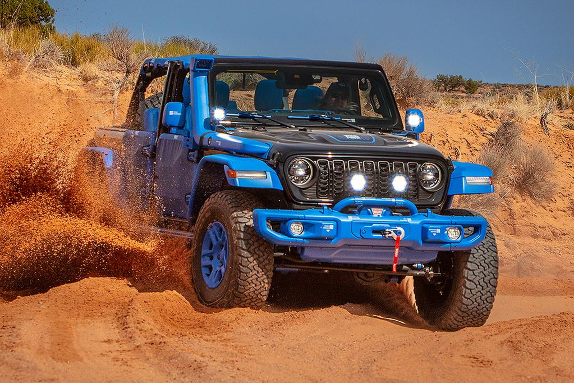 Like a rolling Mopar catalogue, the Blueprint packs 35+ dealer accessories, including a snorkel, tube doors, high-top fenders, and a two-inch lift. It’s all wrapped in eye-popping Mopar Blue and black paint. If you want to know what’s possible with official Jeep accessories—this is your guide.