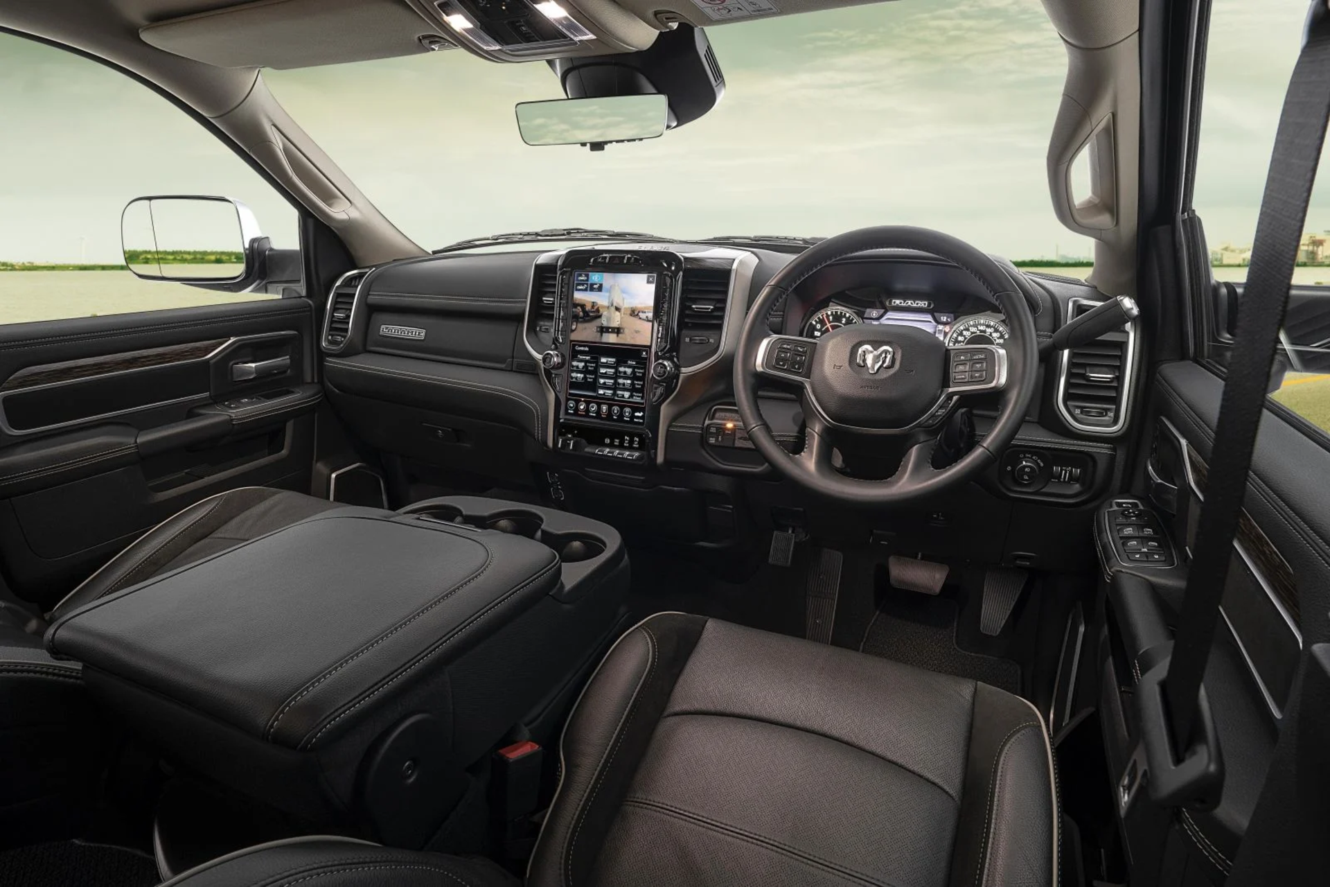 Inside the Ram 3500, a world of luxury awaits. The 12.0-inch touchscreen infotainment system, wired Apple CarPlay, Android Auto, and a 10-speaker Alpine sound system ensure a premium in-cabin experience. The six-seat layout, heated and ventilated front seats, dual-zone climate control, and advanced safety features make every journey comfortable and secure.